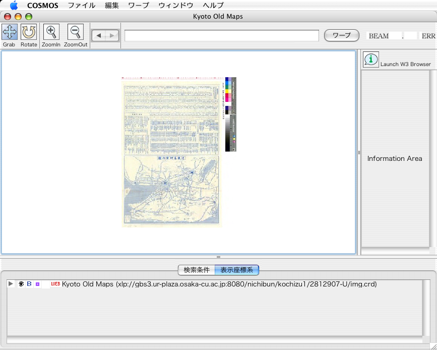 最後に、「認証します」ボタンを押すと、認証が開始します。認証に成功すれば、 図(メイン画面下部・表示座標系パートの認証アイコン)の認証アイコンは消えます( 図(認証後のメインウィンドウ・認証アイコンが消える))。しかし認証に失敗すると、再び認証アイコンは現れますので、認証アイコンを再度クリックし、認証操作をすることが出来ます。
